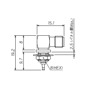 中心コンタクト(材質/表面処理):ジャック側 ベリリウム銅/Auメッキ,端子側 黄銅/Auメッキ